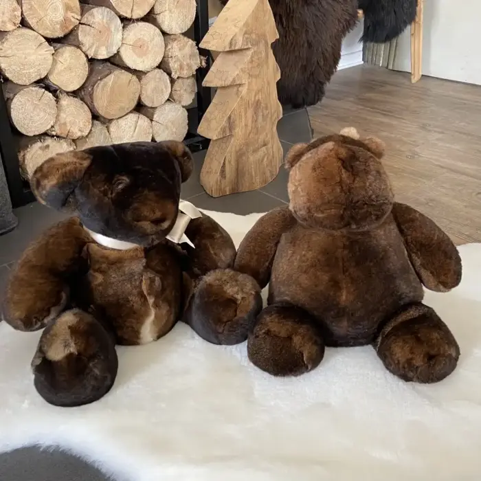 Weicher „Teddy“ und „Hippo“ aus natürlichem Rex Kanin (Echtfell) ca. 32 cm groß